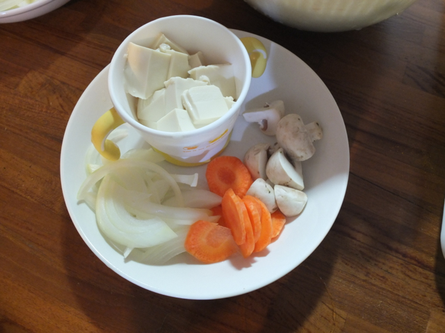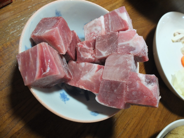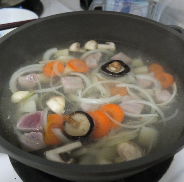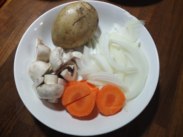 用剩的馬鈴薯、用剩的蘑菇、用剩的紅蘿蔔、用剩的豬胛心肉