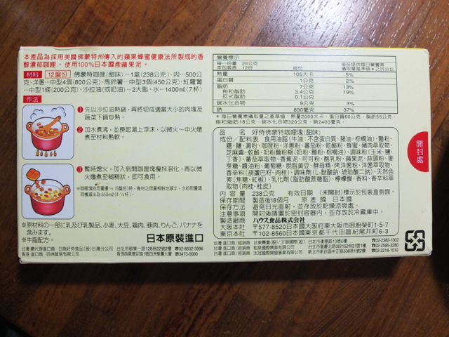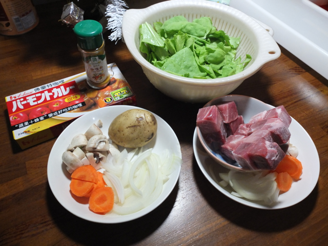 馬鈴薯、紅蘿蔔、蘑菇、洋蔥、咖哩塊、咖哩粉、豬胛心肉