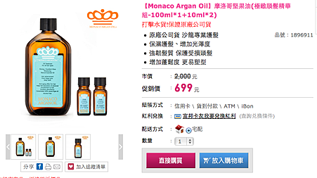 有朋友推薦chair用「摩納哥堅果油極致順髮精華」